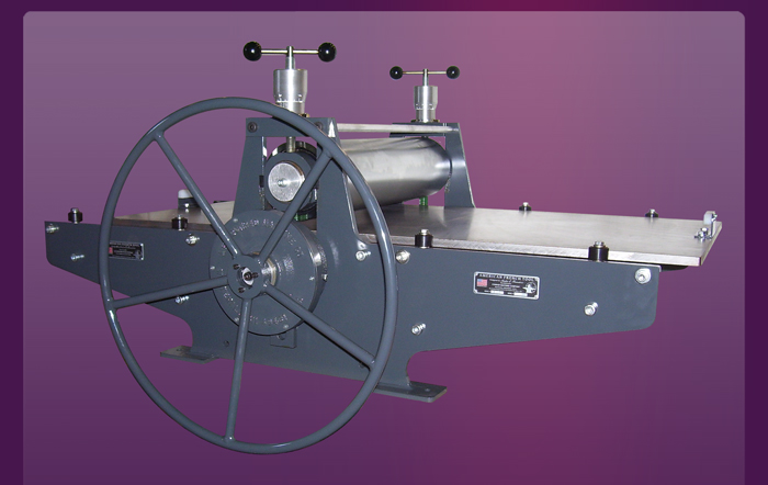 The American French Tool Tabletop’s frame design is based on the elegant American French Tool floor model press design. The side frames are custom machined out of 1/2" thick steel and bolted together with custom made deck plates. The American French Tool tabletop frame is not only the most graceful design of any tabletop etching press, it is also one of the most durable and stable designs.